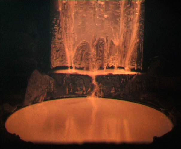 production of structurally and chemically homogeneous titanium ingots of both round and rectangular cross-section from initial charge in one remelting cycle.