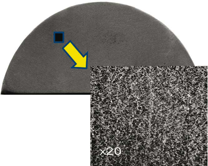 Macrostructure of an ingot of 150 mm diameter of titanium aluminide Ti-44AI-5Nb-2Cr-1,5Zr-1B